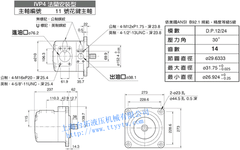 子母葉片定量泵IVP4(11號花鍵主軸)尺寸圖下載
