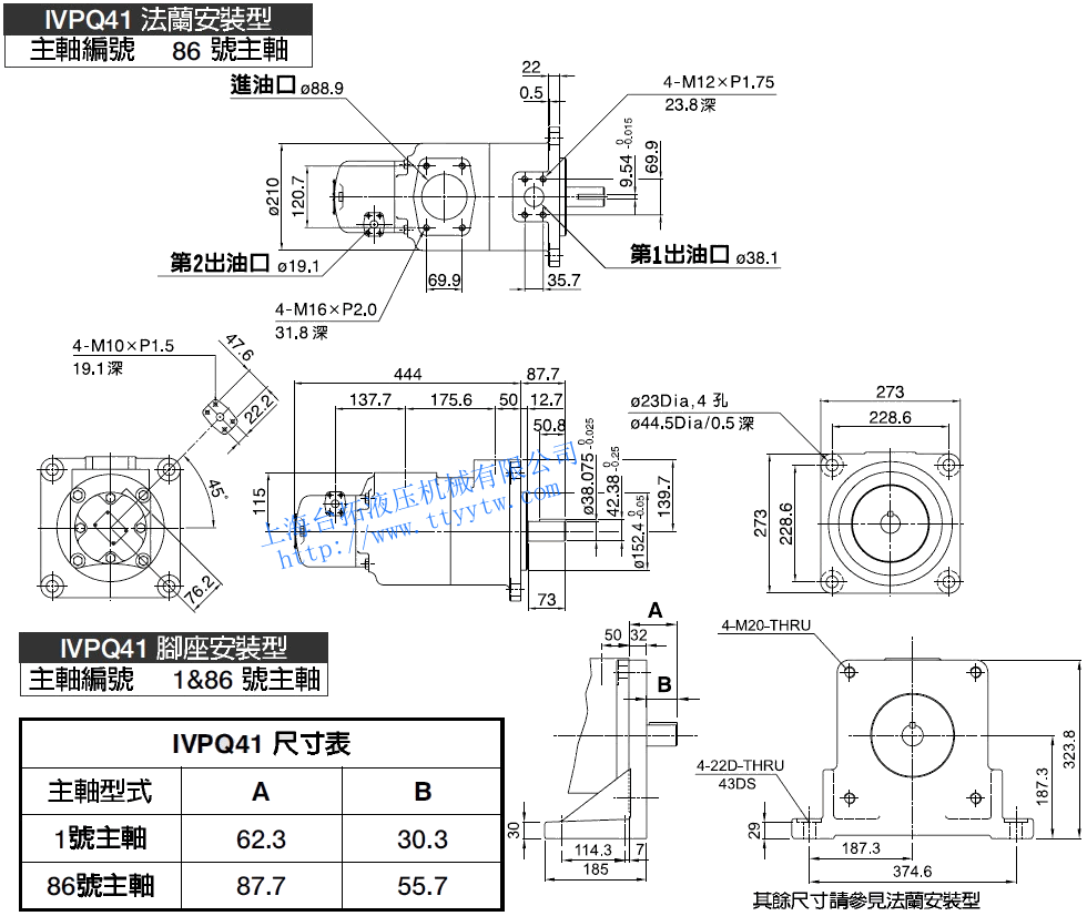 雙聯子母葉片定量泵IVPQ41(1號平鍵主軸)尺寸圖下載  雙聯子母葉片定量泵IVPQ41(86號平鍵主軸/1&86號主軸)尺寸圖下載