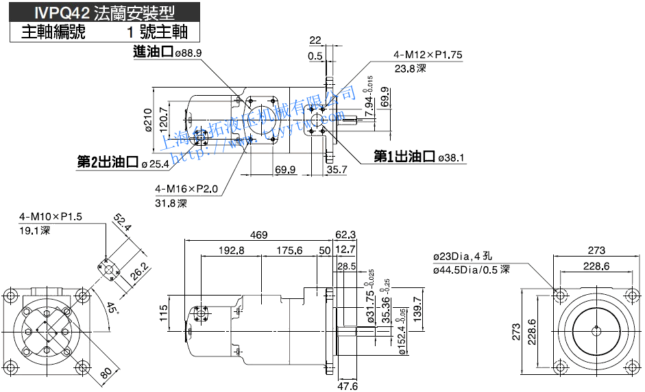 雙聯子母葉片定量泵IVPQ42(1號平鍵主軸)尺寸圖下載  雙聯子母葉片定量泵IVPQ42(86號平鍵主軸/1&86號主軸)尺寸圖下載