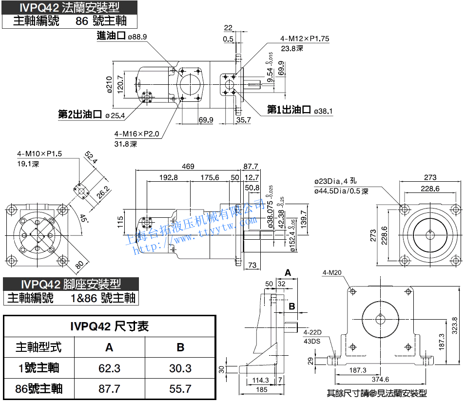 雙聯子母葉片定量泵IVPQ43(1號平鍵主軸)尺寸圖下載  雙聯子母葉片定量泵IVPQ43(86號平鍵主軸/1&86號主軸)尺寸圖下載