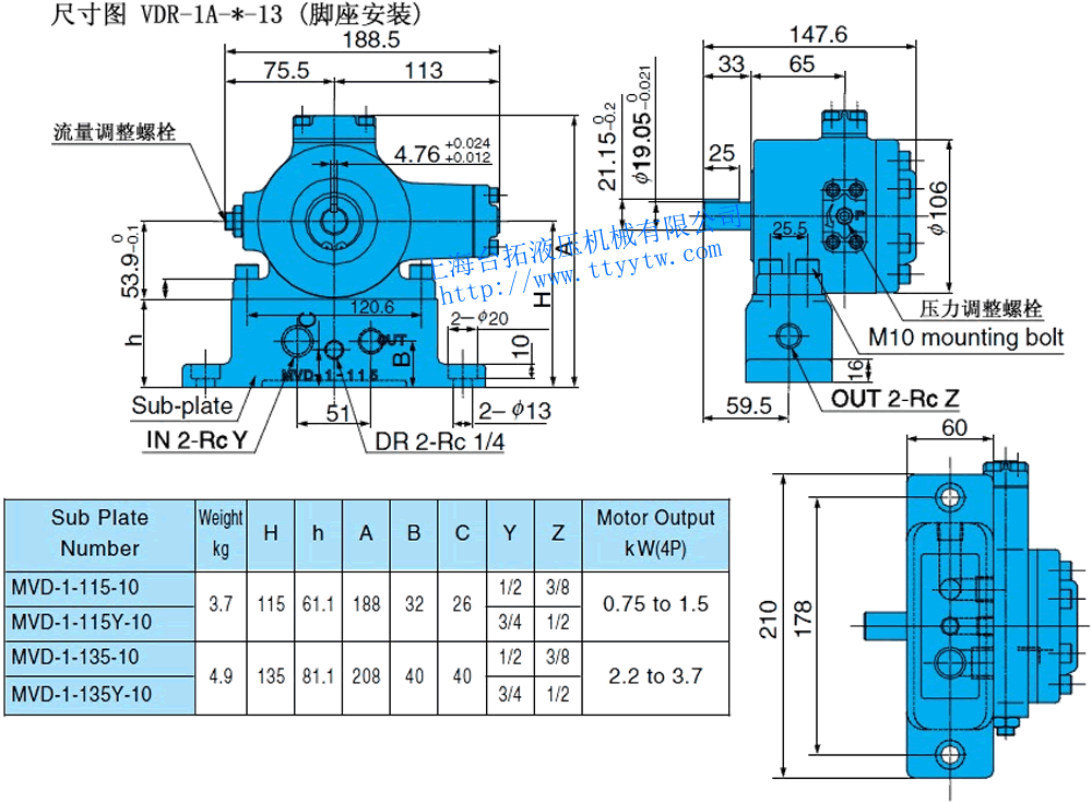 低壓變量葉片泵VDR 13系列規(guī)格表