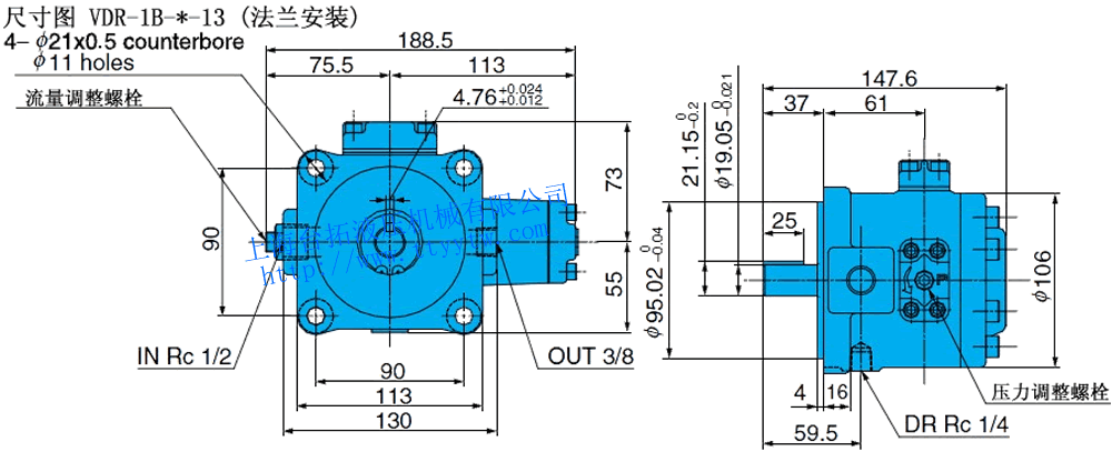 低壓變量葉片泵VDR-1A-*-13尺寸圖下載 低壓變量葉片泵VDR-1B-*-13尺寸圖下載
