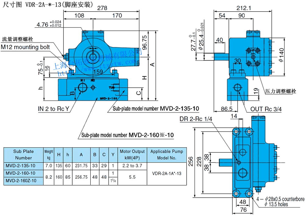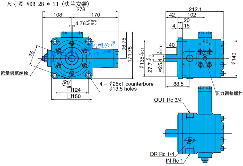 低壓變量葉片泵VDR-2A-*-13尺寸圖下載 低壓變量葉片泵VDR-2B-*-13尺寸圖下載