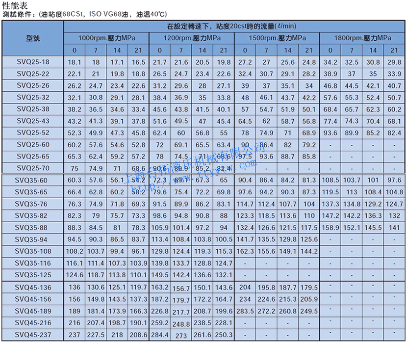 高壓定量葉片泵SVQ25,35,45系列性能表