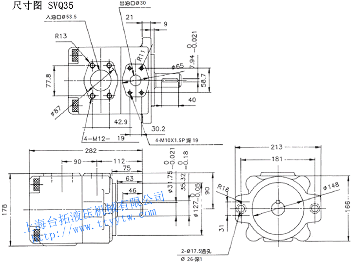 高壓定量葉片泵SVQ25,35,45系列尺寸圖