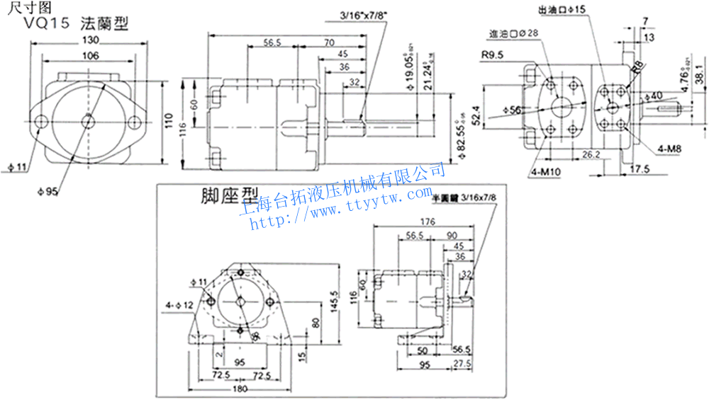 高壓定量葉片泵VQ15~VQ45尺寸圖