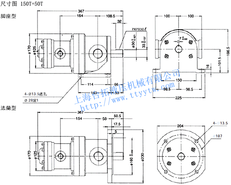 雙聯(lián)定量葉片泵150T+50T尺寸圖