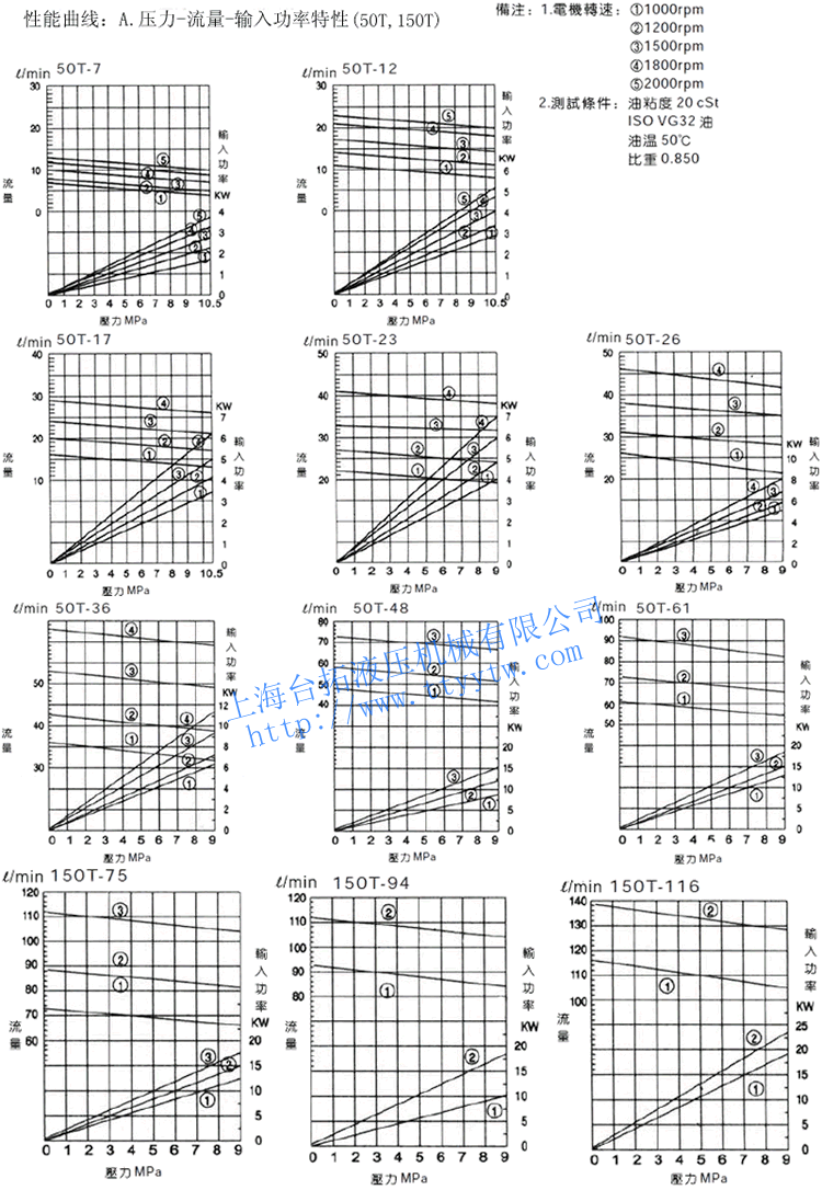 雙聯(lián)定量葉片泵150T+50T性能曲線(參考50T及150T性能曲線)