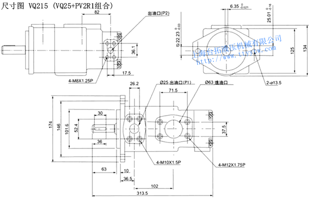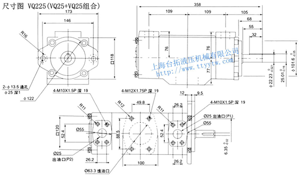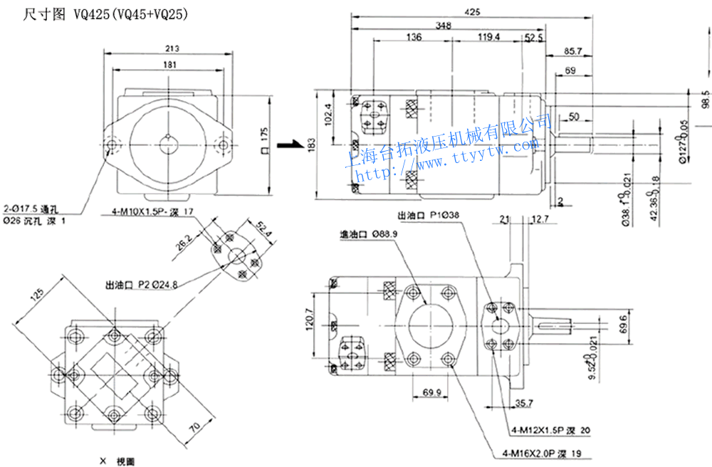 高壓雙聯(lián)定量葉片泵VQ425(VQ45+VQ25組合)尺寸圖下載