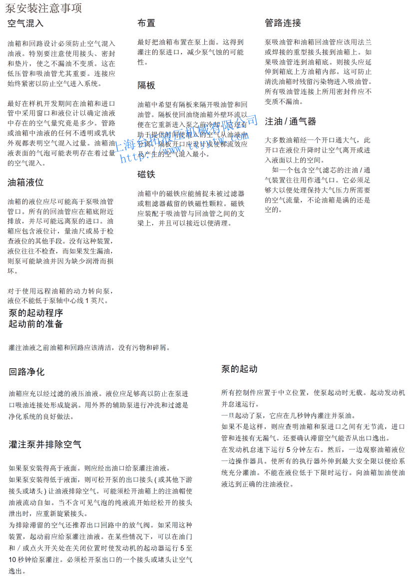 使用說明:1、高壓雙聯(lián)子母葉片泵冷啟動(dòng):當(dāng)使用SAE10W油在860至54cst范圍內(nèi)工作時(shí),轉(zhuǎn)速和壓力應(yīng)限制在它們各自額定的50%以內(nèi),直到系統(tǒng)熱起來。油液粘度超過860cst啟動(dòng)時(shí)要特別注意,要使整個(gè)系統(tǒng)包括遠(yuǎn)處的缸和馬達(dá)都熱起來。