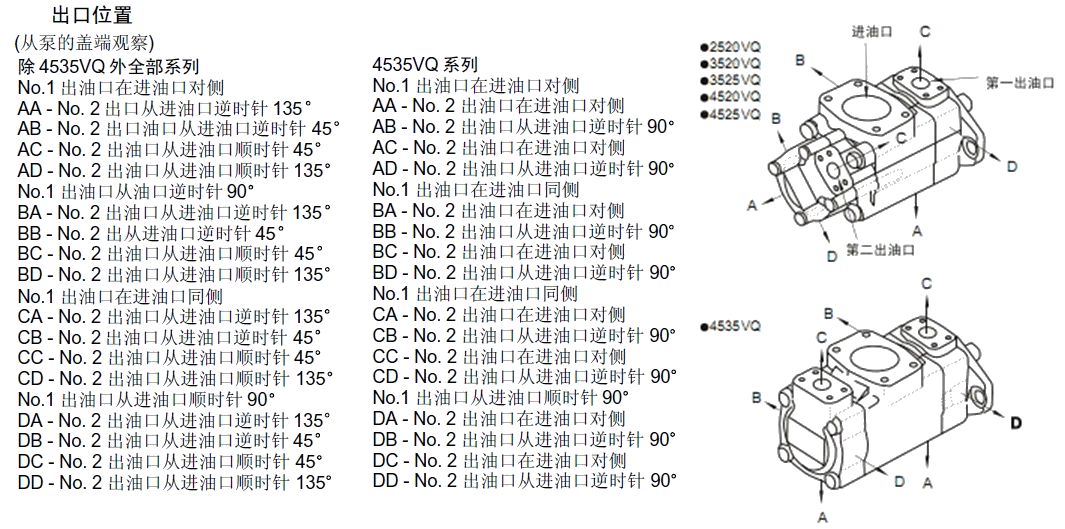 35,38,45高壓雙聯(lián)子母葉片泵VQ系列(帶內(nèi)裝閥)型號(hào)說明