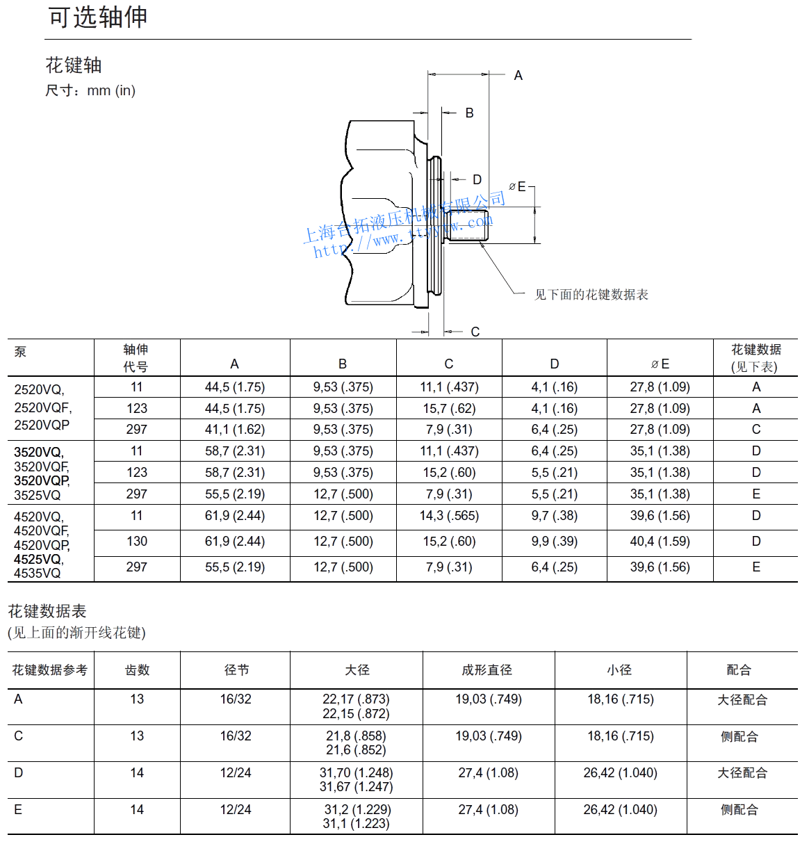 高壓雙聯(lián)子母葉片泵VQ系列可選軸伸花鍵軸