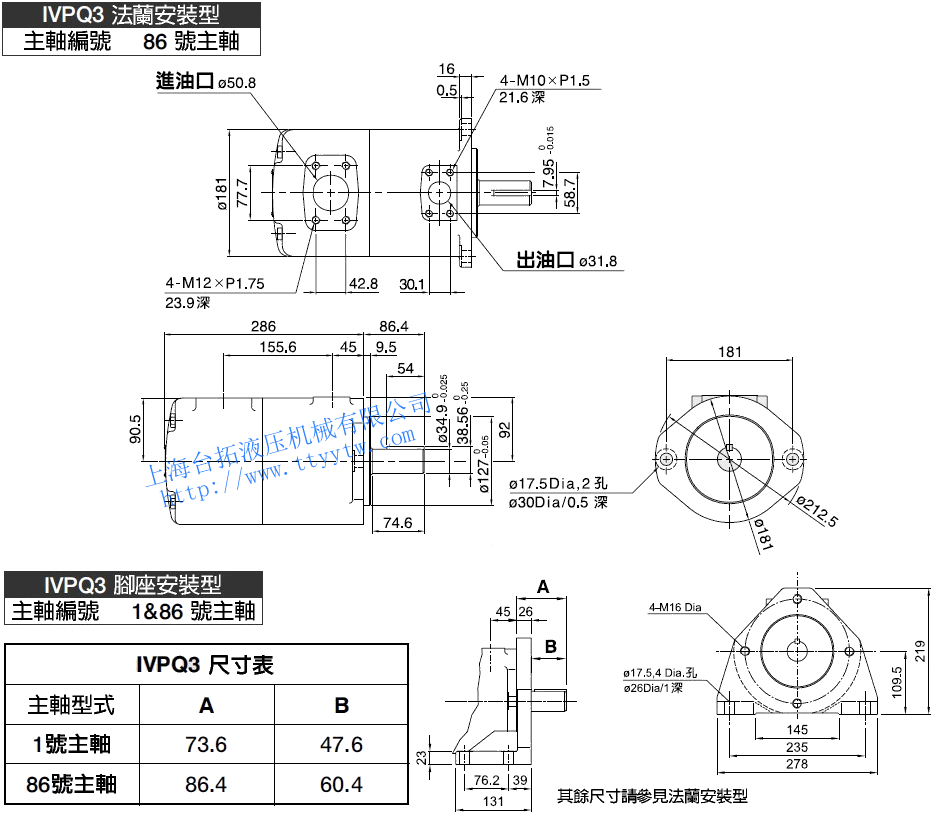 子母葉片定量泵IVPQ4(86號(hào)平鍵主軸/1&86號(hào)主軸)尺寸圖下載