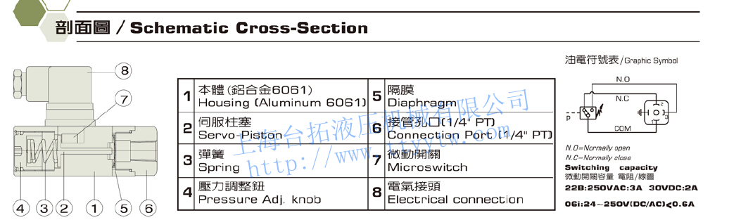DNP -08K -21B 型式 壓力調(diào)整范圍 設計號 一般型隔膜式 見規(guī)格表 21B 壓力繼電器DNP規(guī)格表