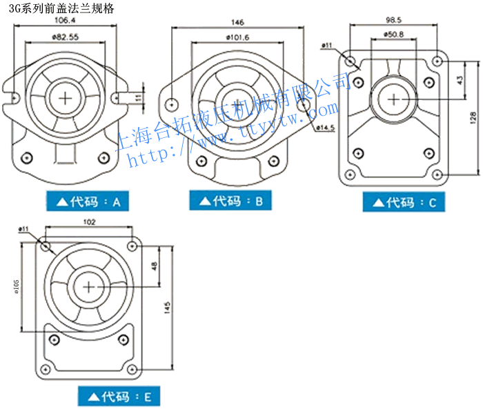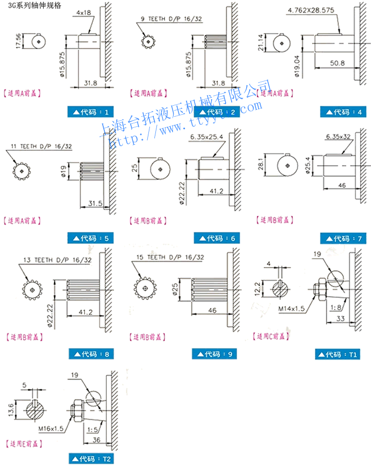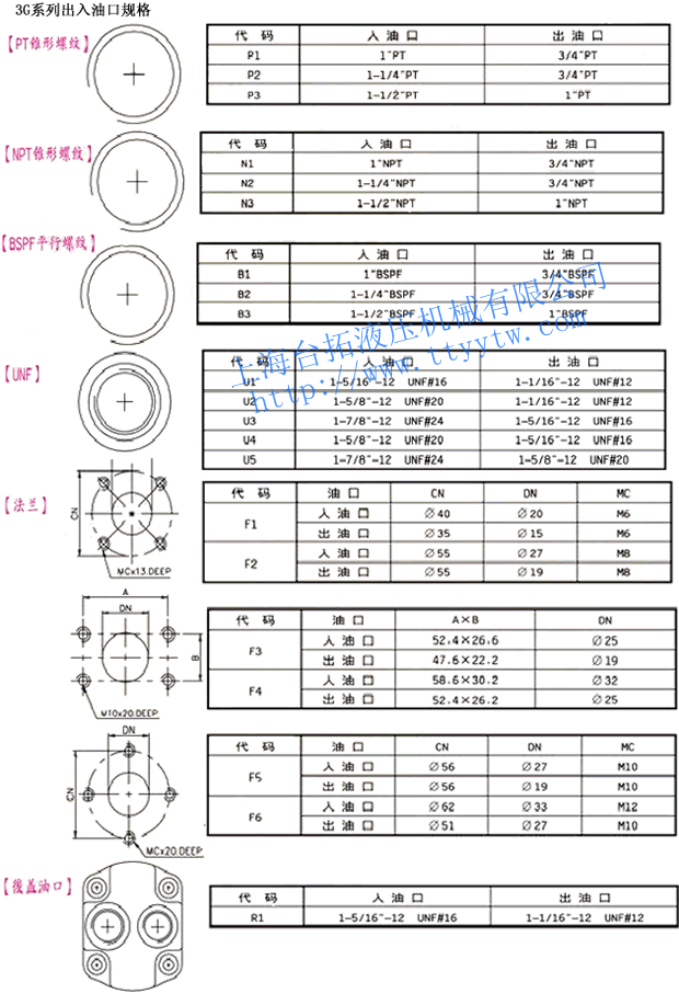 3 G C T1 F6 70 R 系列 型式/功能 前蓋法蘭規(guī)格 軸伸規(guī)格 出入油口規(guī)格 型號 旋向(R,L) 備注:R表示右轉(zhuǎn),面向軸伸順時針;L表示左轉(zhuǎn),面向軸伸逆時針。2、假設(shè)您所要的前泵排量是70.0ml/rev,旋向是右旋,正確的訂購型號:3GCT1F670R。