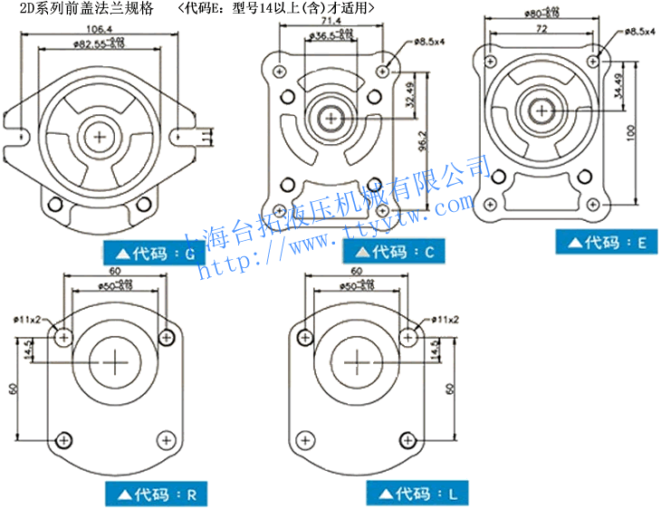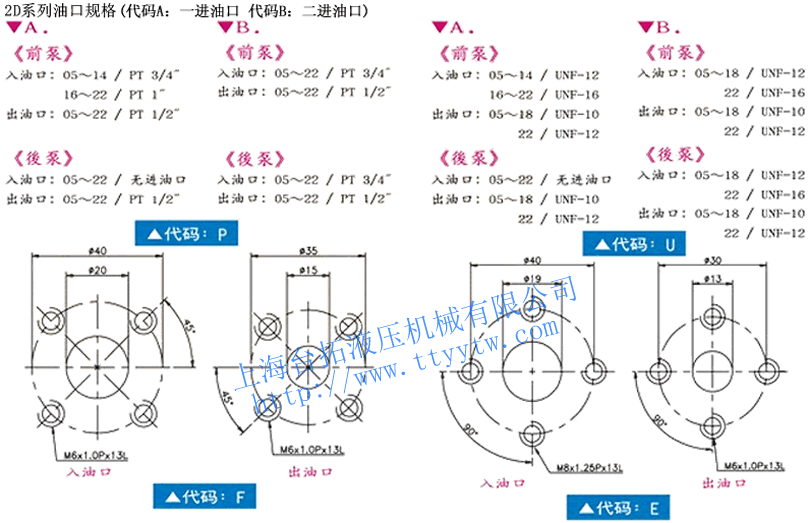 2 D G 1 B P 16 14 R 系列 型式/功能 前蓋法蘭規(guī)格 軸伸規(guī)格 2進油口數(shù) 出入油口規(guī)格 前泵排量 后泵排量 旋向(R,L) 備注:1、R表示右轉(zhuǎn),面向軸伸順時針;L表示左轉(zhuǎn),面向軸伸逆時針。2、假設您選前蓋法蘭為G,軸伸代碼為1,二進油口代碼為B,出入油口規(guī)格代碼為P,選用排量是16&14ml/r,旋向是右旋,正確的訂購型號:2DG1BP1614R。