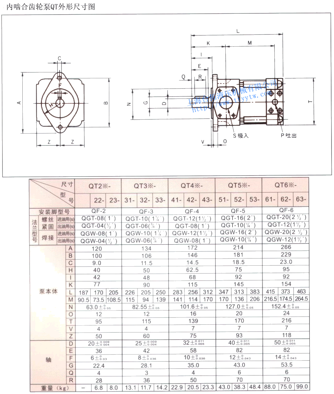 中壓內(nèi)嚙合齒輪泵QT規(guī)格表