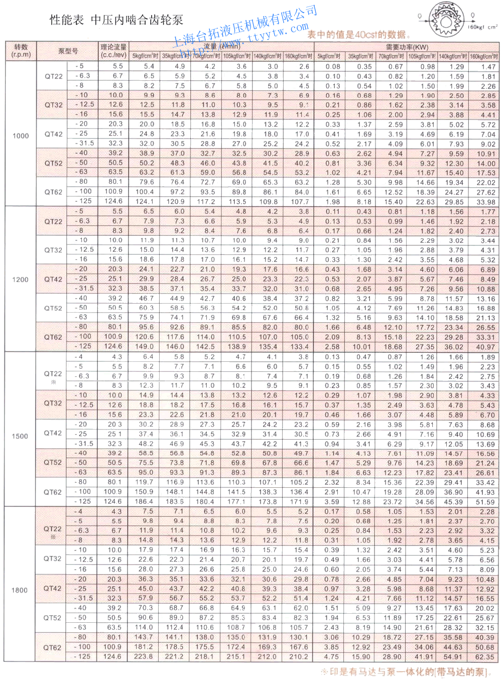 中壓內(nèi)嚙合齒輪泵QT性能表