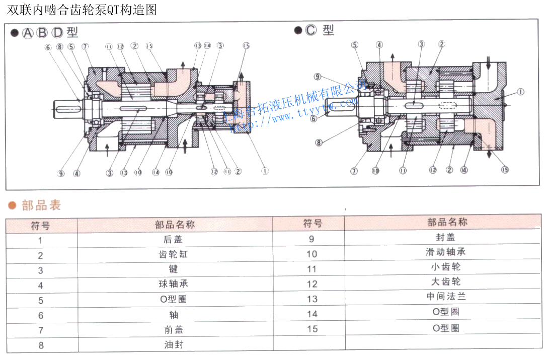雙聯(lián)內(nèi)嚙合齒輪泵QT通過一根共用的軸來驅(qū)動(dòng)各種獨(dú)立的2臺(tái)泵的一種組合泵。