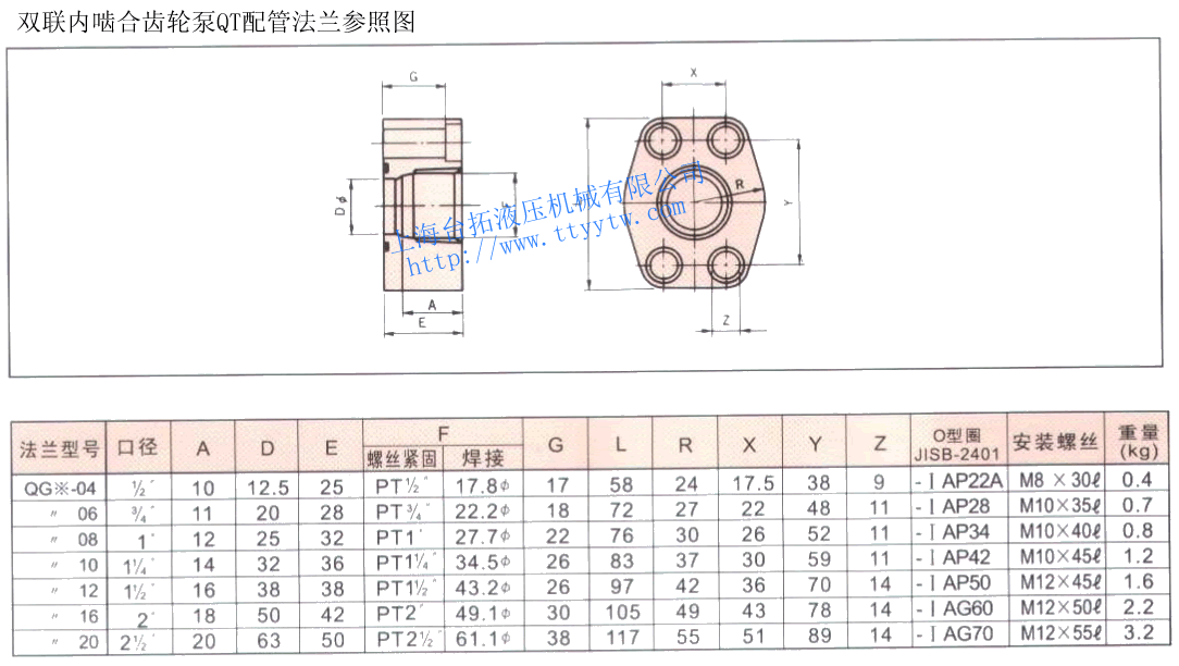 雙聯(lián)內(nèi)嚙合齒輪泵QT配管法蘭參照?qǐng)D下載