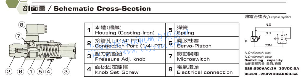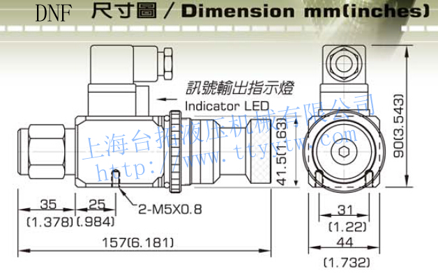 壓力繼電器DNF壓力直讀式,面板固定型,接管口徑:1/4" PT(PF,NPT)內(nèi)牙,負(fù)載:5A-125,250VAC,LOAD:5A,30VDC,0.15A,125VDC。