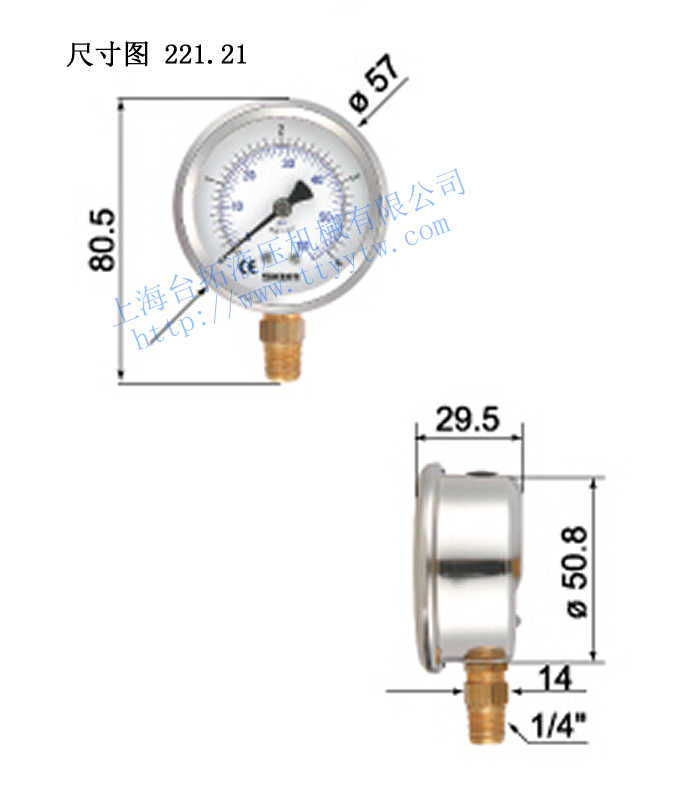 臺灣協(xié)鋼SKON充油式壓力表221.21尺寸圖