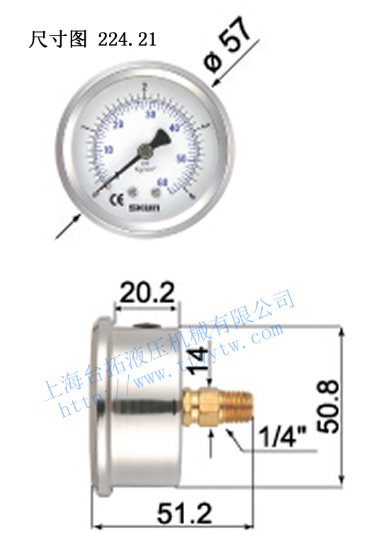 臺灣協鋼SKON充油式壓力表224.21尺寸圖