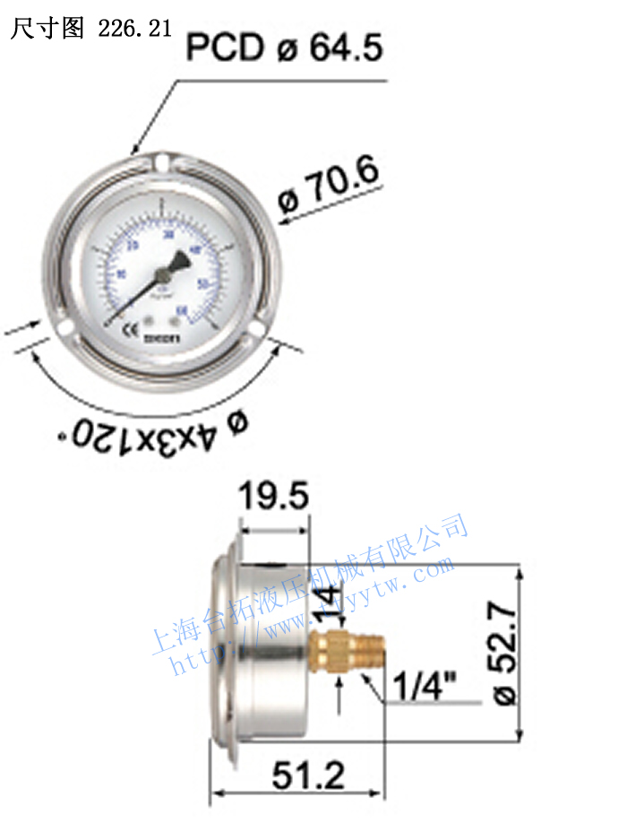 臺(tái)灣協(xié)鋼SKON充油式壓力表226.21尺寸圖