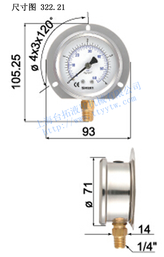 臺(tái)灣協(xié)鋼SKON充油式壓力表322.21尺寸圖