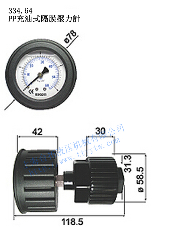 PP充油式隔膜壓力表334.64尺寸圖