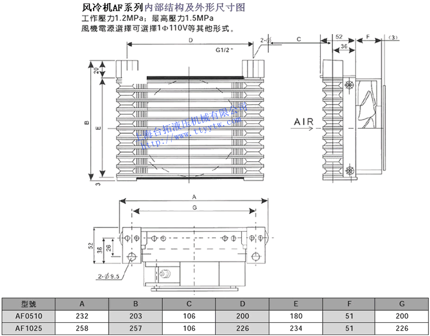 風(fēng)冷機AF0510,AF1025內(nèi)部結(jié)構(gòu)及外形尺寸圖