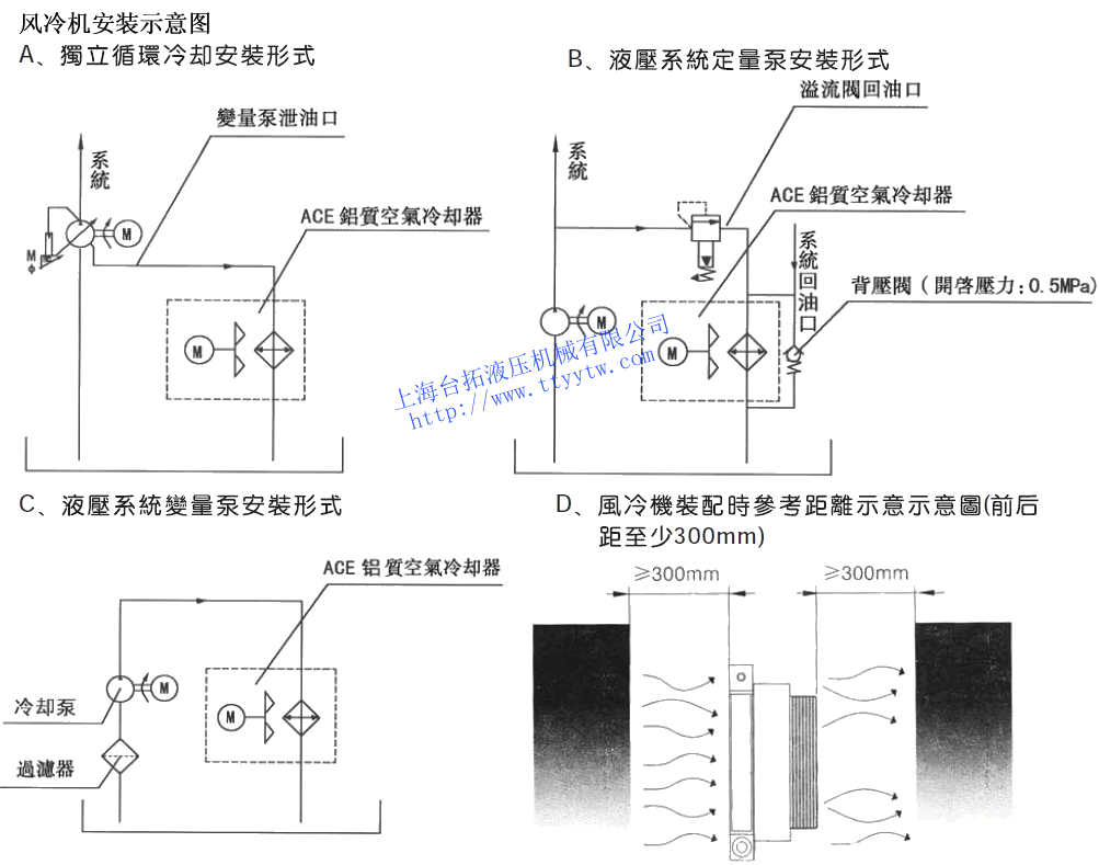 風冷機ACE系列工作壓力1MPa,流量10?/min-200?/min,適用于變量泵的泄油冷卻。