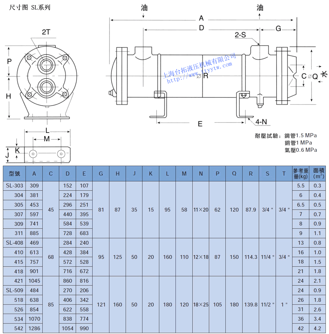 旋流型滾牙式油冷卻器SL系列尺寸圖