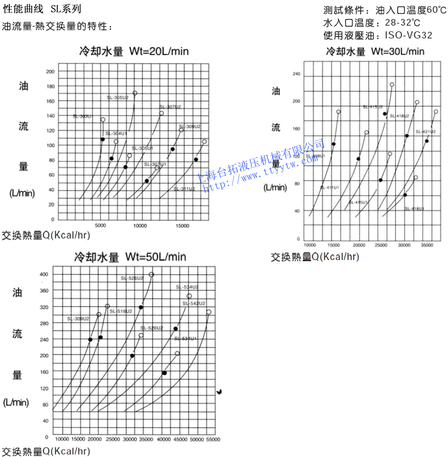 旋流型滾牙式油冷卻器SL系列性能曲線