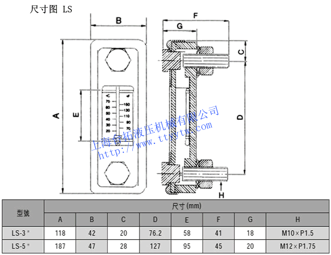 5-5"液位溫度計(jì)LS規(guī)格表