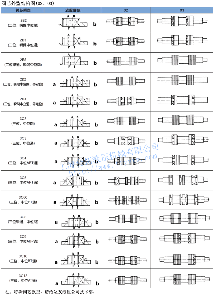(彈簧中位)備注:1、未列之閥芯形式請(qǐng)參考閥芯種類表。2、插頭型和接線盒型本身均帶有指示燈。