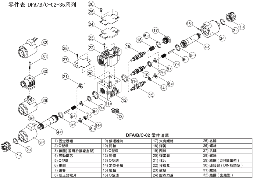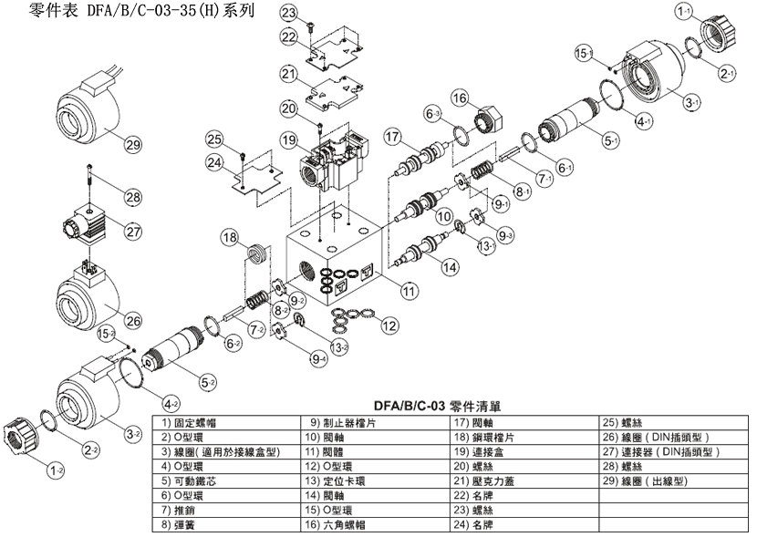 電磁換向閥DFA/B/C-02-35系列零件表下載 電磁換向閥DFA/B/C-03-35(H)系列零件表下載