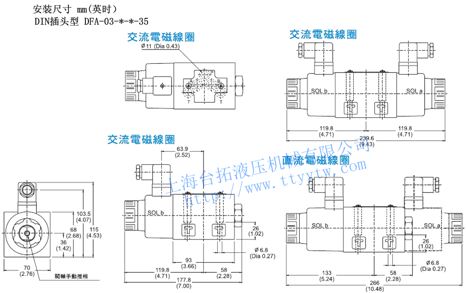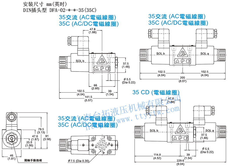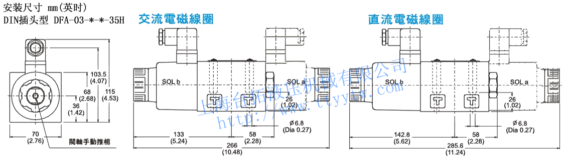 電磁換向閥DFA-03-*-*-35安裝尺寸下載 電磁換向閥DFC-03-*-*-35H安裝尺寸下載
