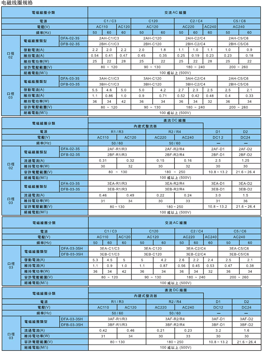 電磁換向閥DFA/B/C電磁線圈規(guī)格