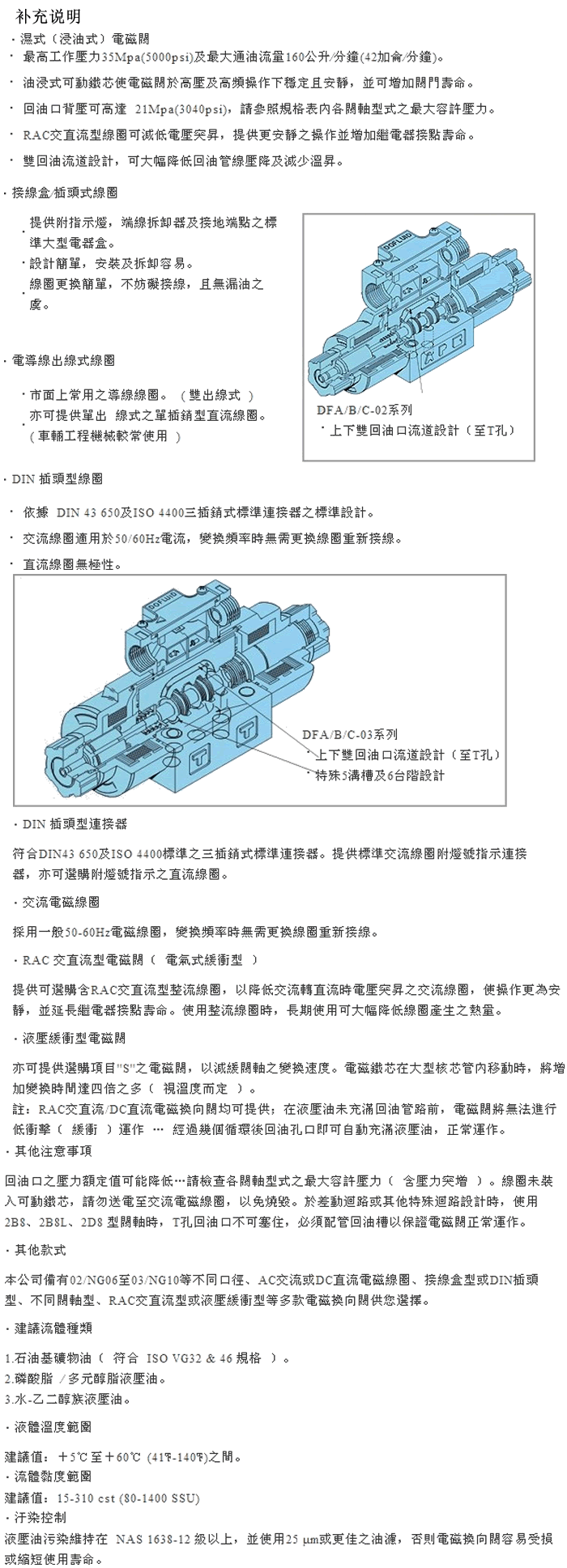 35C:允許背壓:160BAR(限制用于02系列)電磁換向閥DFA/B/C-02/03規(guī)格表