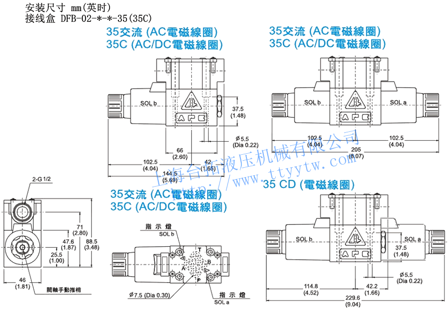電磁換向閥DFC-02-*-*-35安裝尺寸下載 電磁換向閥DFB-03-*-*-35安裝尺寸下載