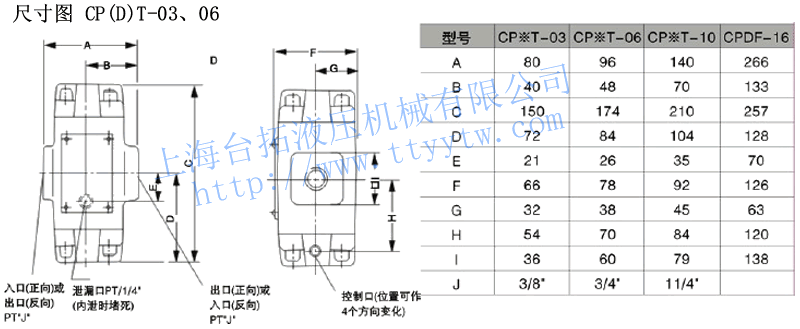 A2:0.353.4 4.5 CP*T-04 - 75 3.4 - CP*T-06 CP*G-06 125 6.2 7 CP*T(F)-10 CP*G-10 300 11.6 12 CP*T(F)-16 - 400 24.2 - 備注:1、管式及板式之*記號為CPD為先導(dǎo)型,CP則為標(biāo)準(zhǔn)型。2、反向流動時,液控單向閥的出口接回油箱時,請選用a圈”內(nèi)部泄油“型式,當(dāng)液控單向閥的出口有背壓時,請選用B圈”外部泄油“型式。 3、法蘭式CP*F-10、16才有,詳細尺寸和規(guī)格請洽臺拓液壓技術(shù)部。4、額定流量是在壓力損失0.35MPa下所得之值。
