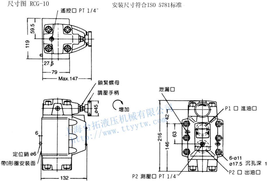 H:7-250.8 4.5 4.3 RCG-03 RCT-03 5.4 4.8 RG-06 RT-06 125 1 6.8 6.9 RCG-06 RCT-06 8.1 7.8 RG-10 RT-10 250 1.2 11.0 12.0 RCG-10 RCT-10 13.8 13.8 備注:1、減壓閥RG,RCG系列泄漏量為前后壓差20.5MPa時所測得的。2、減壓閥RCG、RCT裝有單向閥可使用于執(zhí)行元件的A、B兩孔,而RG、RT只能應(yīng)用于回路中的P孔。3、減壓閥RG,RCG系列調(diào)整調(diào)壓受柄時,升壓須順時針方向慢慢調(diào)整,降壓則相反方向,調(diào)壓后務(wù)必鎖定固定螺帽。4、減壓閥RG,RCG系列泄油口必須在一個接近于大氣壓力的低背壓下直接通油箱。