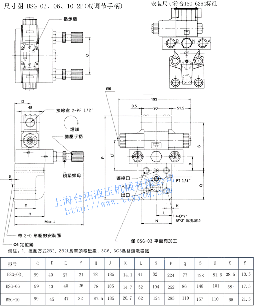 3P:三段壓力控制電磁溢流閥BSG,BST規(guī)格表