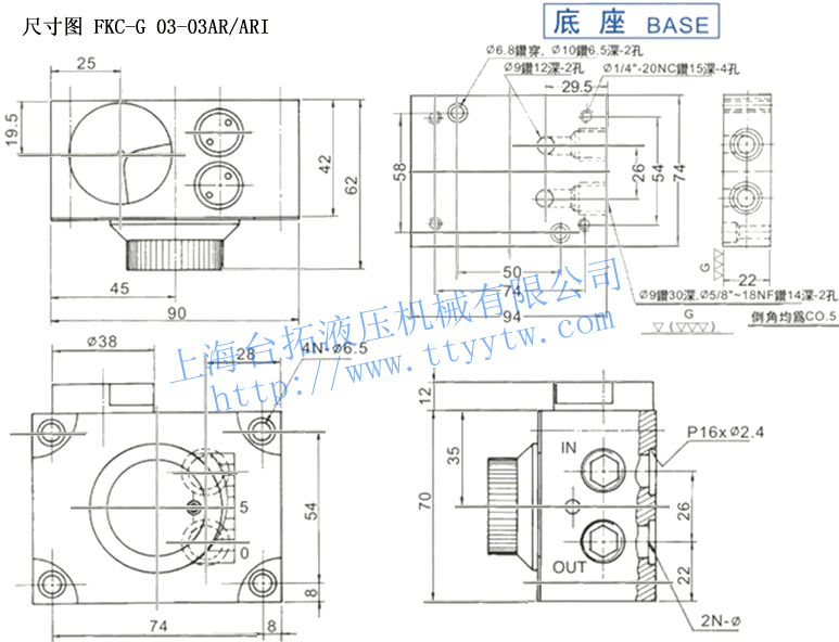 型 號 流量調(diào)整范圍?/min 最高使用壓力kg/cm2 自由流量?/min 接線口徑 FKC-G 002-03AR 0.1~2 70 30 PT 3/8 FKC-G 004-03AR 0.1~4 FKC-G 006-03AR 0.1~6 FKC-G 002-03ARI 0.1~2 FKC-G 004-03ARI 0.1~4 FKC-G 006-03ARI 0.1~6 調(diào)速閥FKC-G尺寸圖