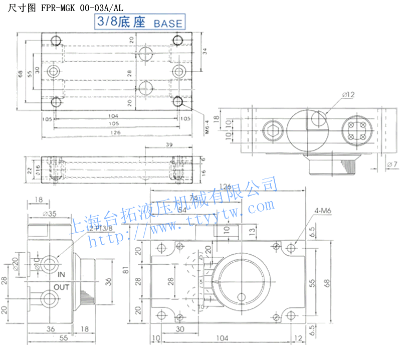 型 號 流量調(diào)整范圍?/min 最高使用壓力kg/cm2 自由流量?/min 接線口徑 FPR-MGK 002-03A 0.1~2 70 30 PT 3/8 FPR-MGK 004-03A 0.1~4 FPR-MGK 008-03A 0.1~8 調(diào)速閥FPR-MGK 00-03A/03AL尺寸圖