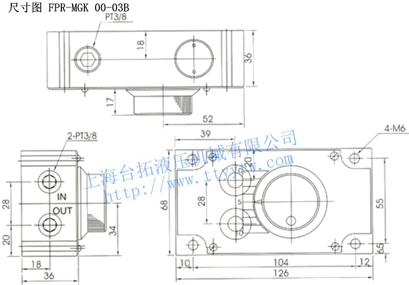 型 號 流量調整范圍?/min 最高使用壓力kg/cm2 自由流量?/min 接線口徑 FPR-MGK 002-03B 0.1~2 70 30 PT 3/8 FPR-MGK 004-03B 0.1~4 FPR-MGK 008-03B 0.1~8 調速閥FPR-MGK 00-03B尺寸圖