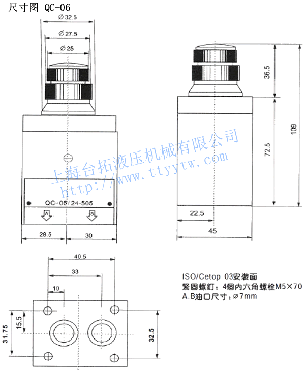5、壓力補(bǔ)償型流量控制閥QC-06流量(同型號(hào)有關(guān)):1.5、6、11、16、24?/min。