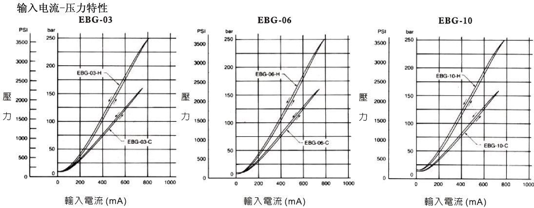 電液比例溢流閥EBG輸入電流-壓力特性
