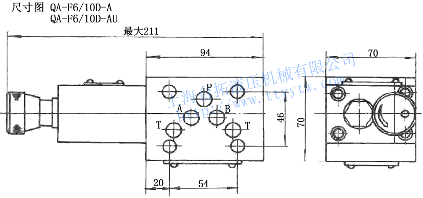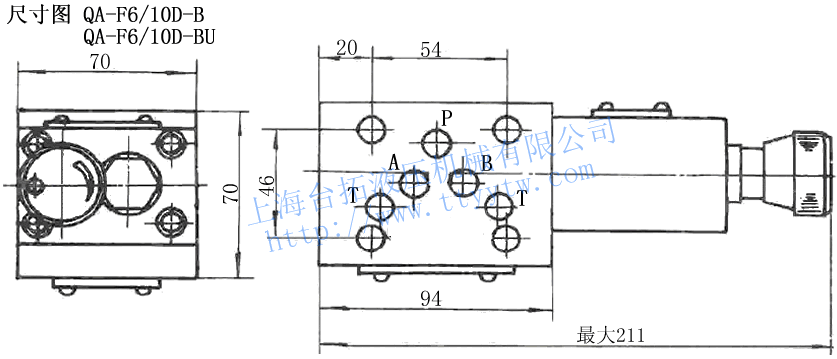 QA -F 6/ 10 D A U 系列號(hào)碼 公稱壓力 調(diào)整閥通徑 該閥所屬系列 安裝方式 元件進(jìn)出口油路 出口節(jié)流 單向調(diào)速閥 20Mpa ?6 ?10 疊加式 A:A出口